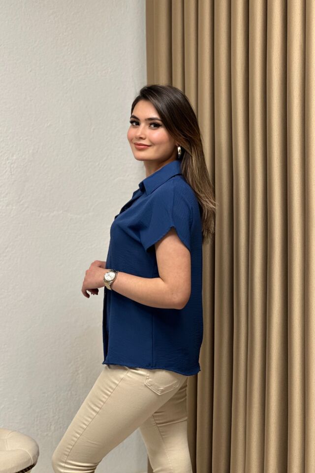 Ayrobin Kumaş Kısa Kollu Gömlek İndigo Mavi