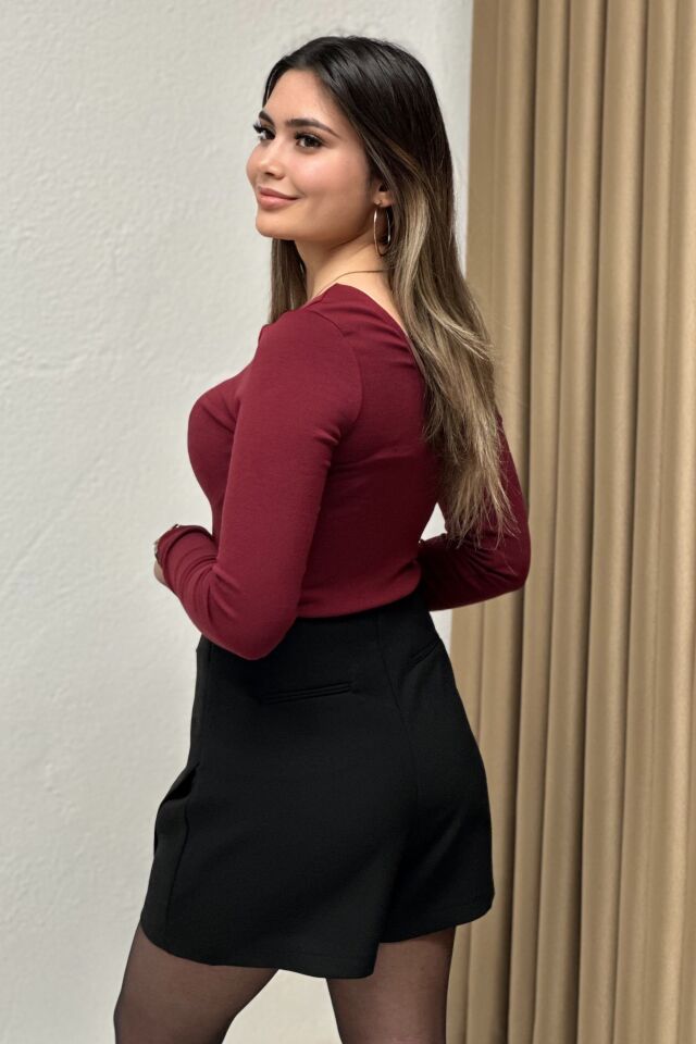 Kapama Detaylı Şort Etek Siyah